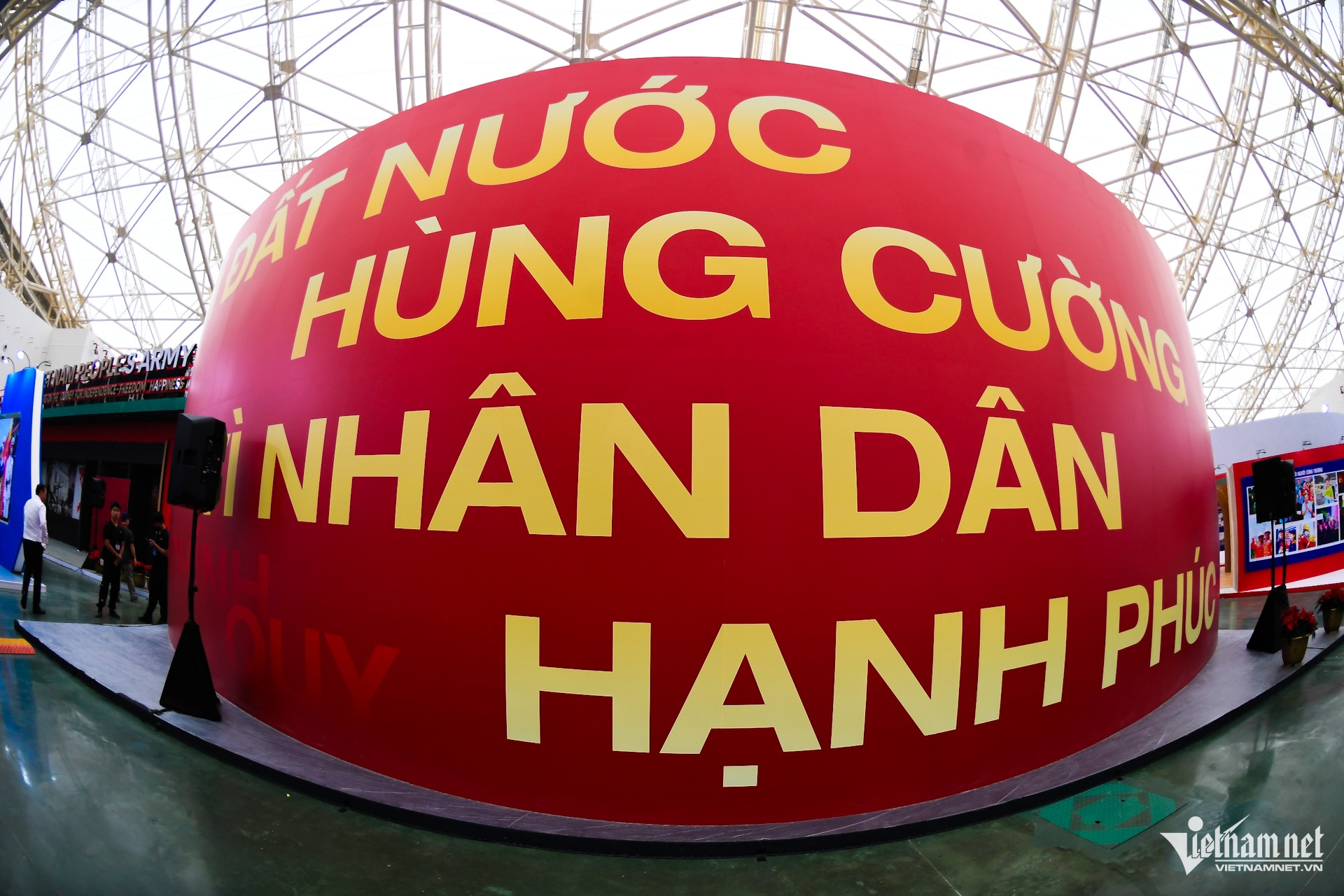 Không gian trưng bày của triển lãm gần 260.000 m² đang dần được lấp đầy những hình ảnh cờ đỏ sao vàng rực rỡ.
