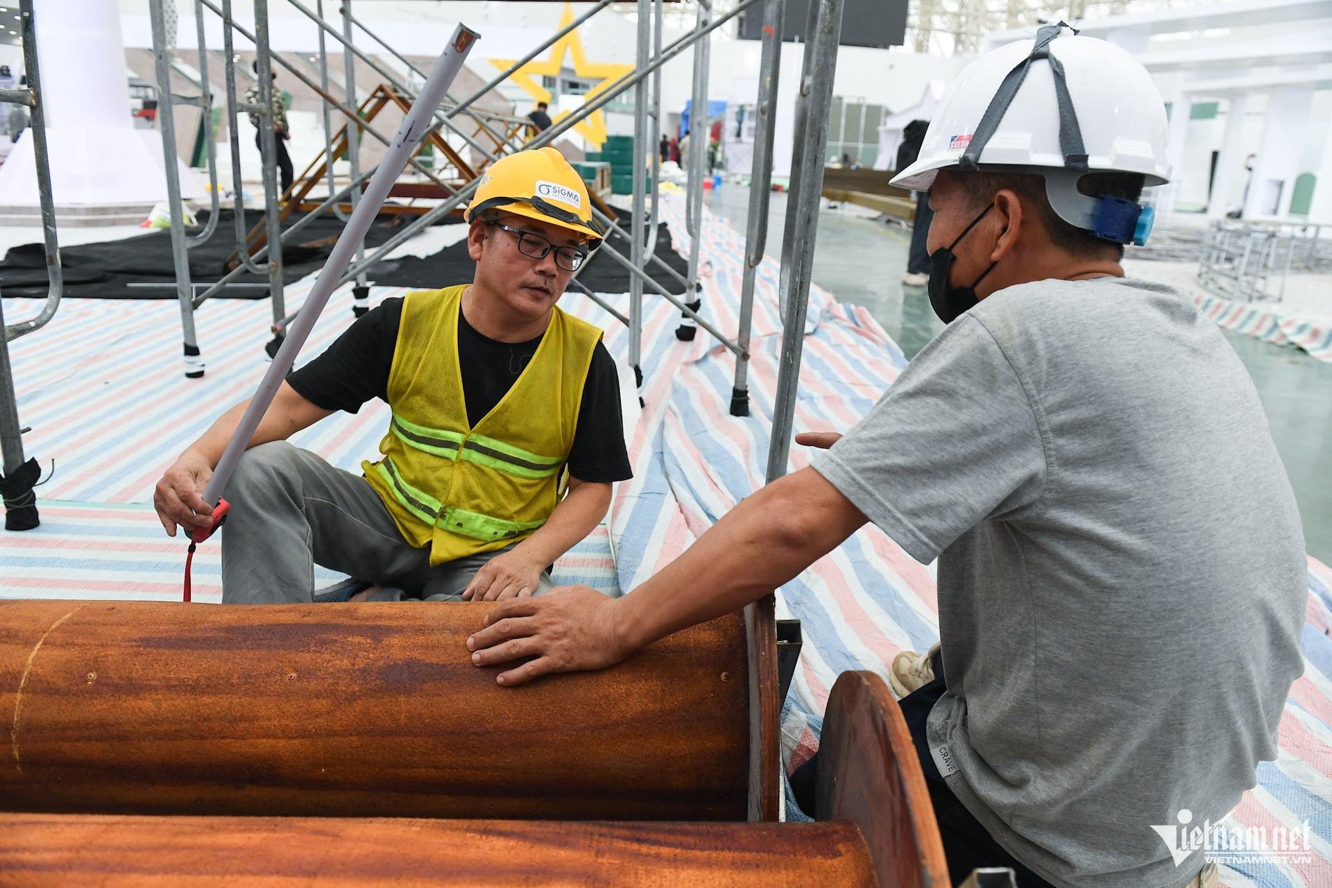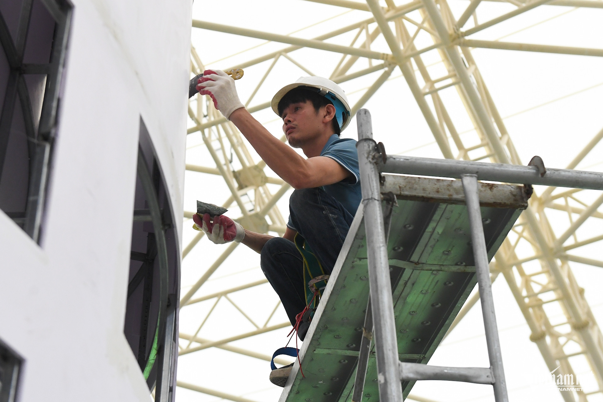 Những ngày gần đây, hàng trăm công nhân làm việc ngày đêm, tiếp tục gấp rút để hoàn tất các hạng mục cuối trước khi triển lãm "80 năm Hành trình Độc lập - Tự do - Hạnh phúc" chính thức khai mạc vào ngày 28/8.